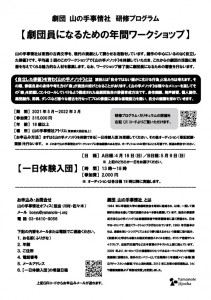 2021年度【劇団員になるための年間ワークショップ】参加者募集中です。