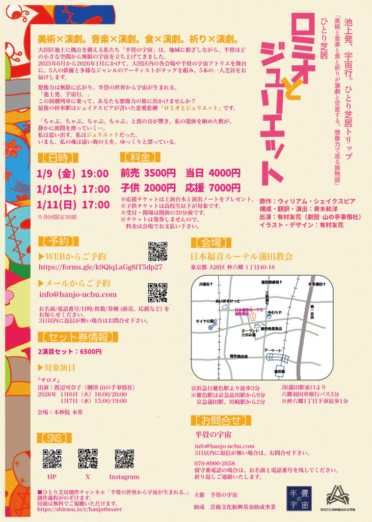 このたび、半畳の宇宙「池上発、宇宙行。ひとり芝居トリップ」という企画で、『ロミオとジュリエット』を上演することになりました。